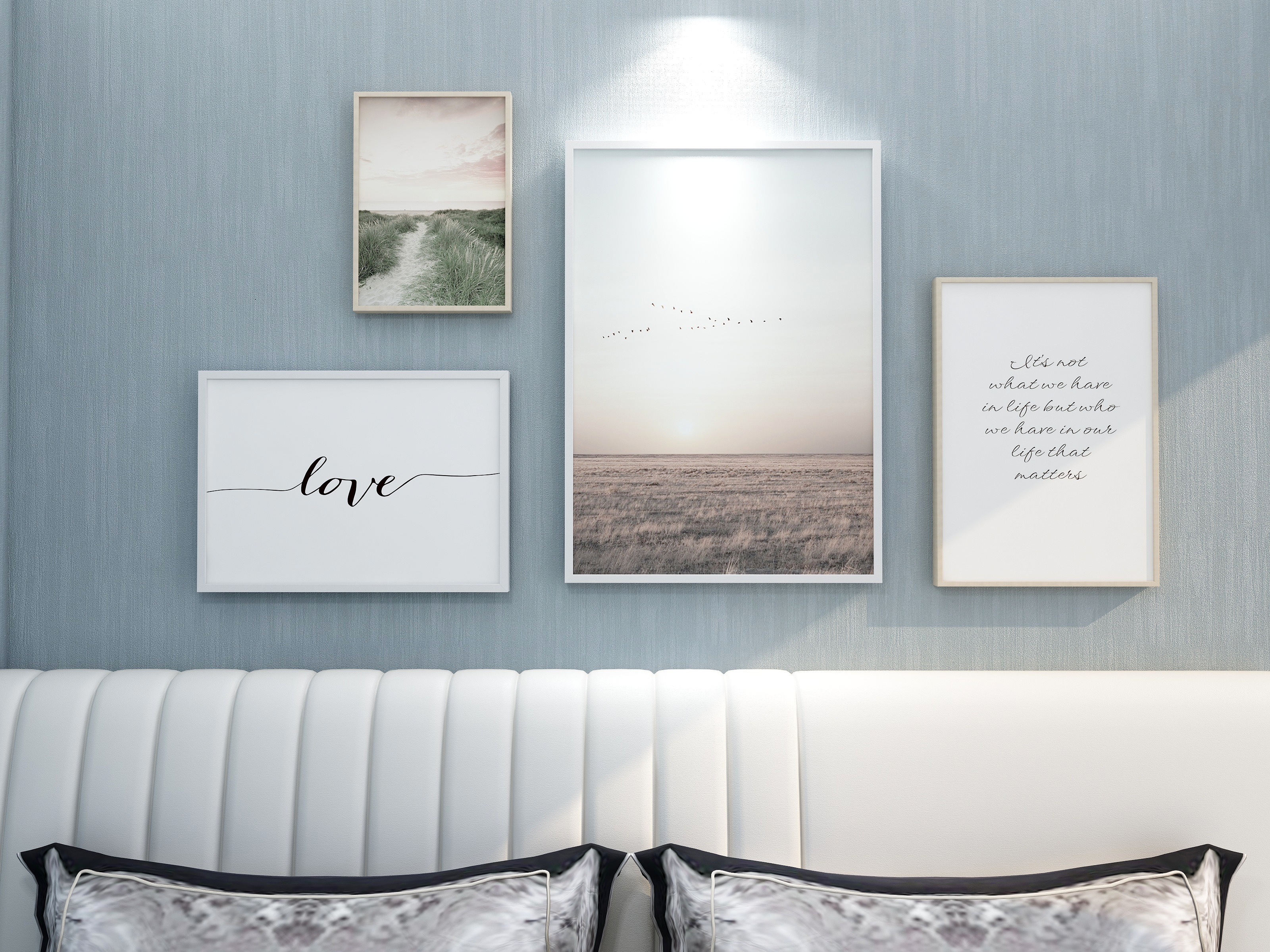 木制柜子體現(xiàn)了生活質(zhì)感,藝術(shù)畫的點(diǎn)綴,提升整體的質(zhì)感。