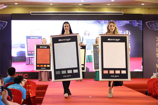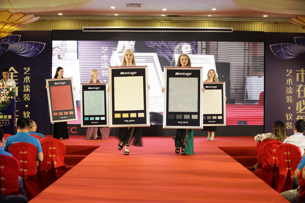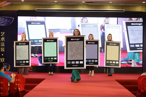 當(dāng)美麗的模特手持蒙太奇藝術(shù)涂料新品走出舞臺那一刻,現(xiàn)場氣氛瞬間被燃爆,響起雷鳴般的掌聲。