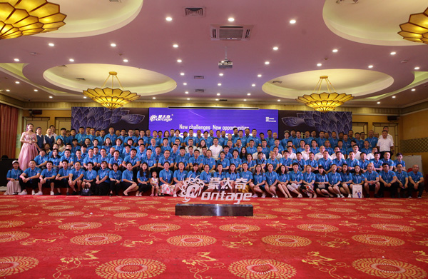當您以輕快的步伐進入會場時,來自蒙太奇總部銷售部、客服部人員身著統一服裝,在兩側分列而立,懷著激動、興奮的心情迎接經銷商家人的到來,在熱鬧歡快的氛圍中,蒙太奇新品發布會正式開始。