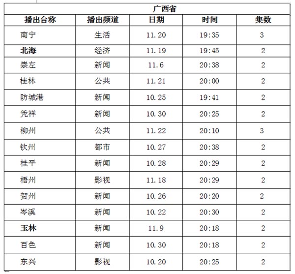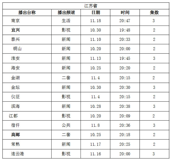 具體播出時間如下:
